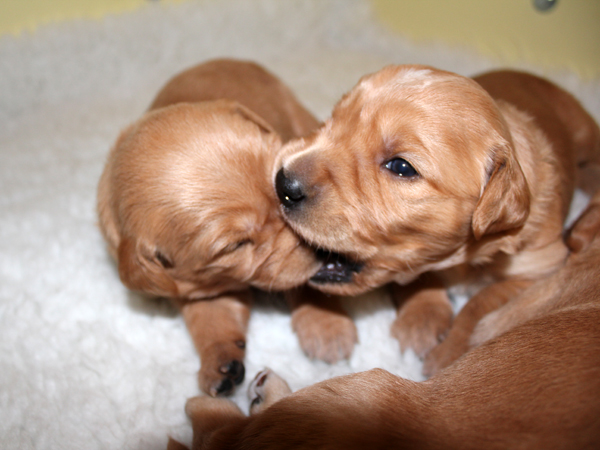 Our puppies are three weeks old now. They already found their way into the indoor playground.