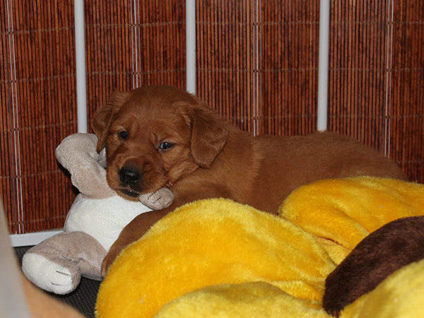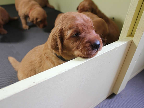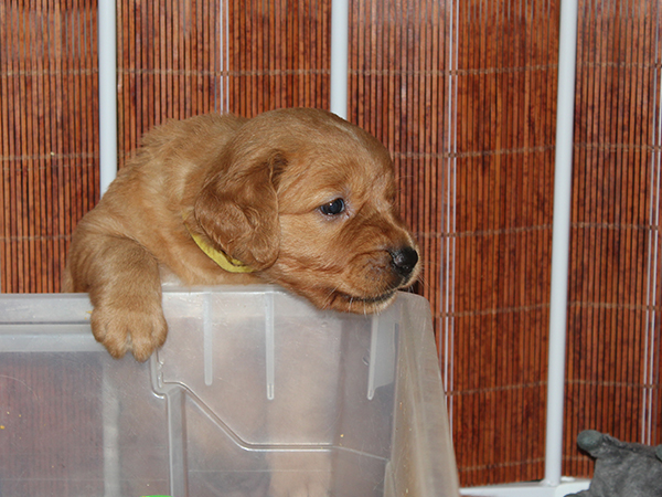 Our puppies are four weeks old today. This week, they have learned to eat solid food.