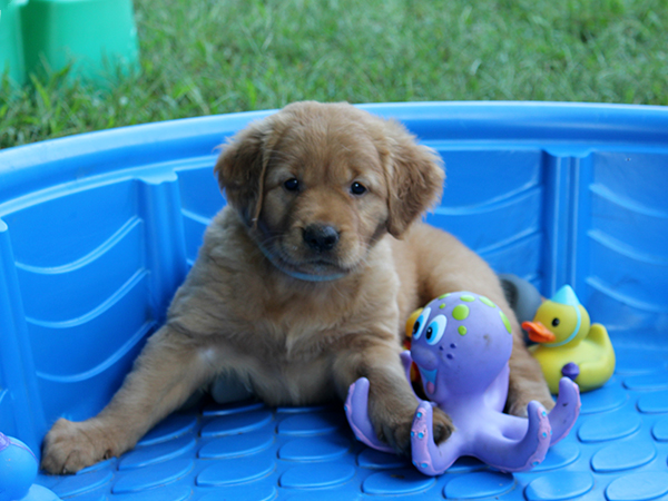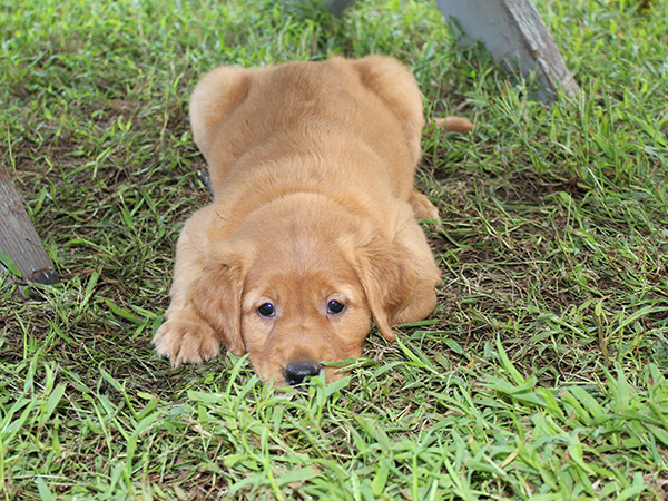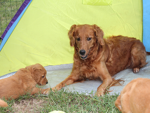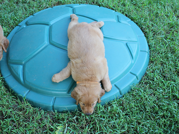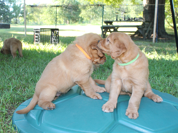 Our puppies are six weeks old today. They spend most of their play time outdoors now.
